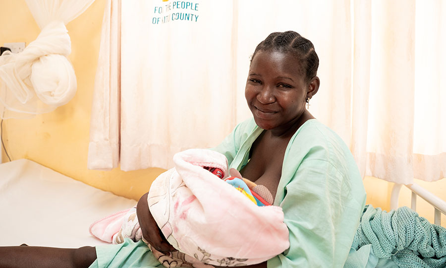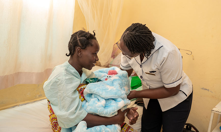 Photo: Nurse Miriam provides care to baby Roman in the Maternity Unit at Ikanga Level 4 Hospital in Kenya (Content Hub Media for CMMB Kenya).
