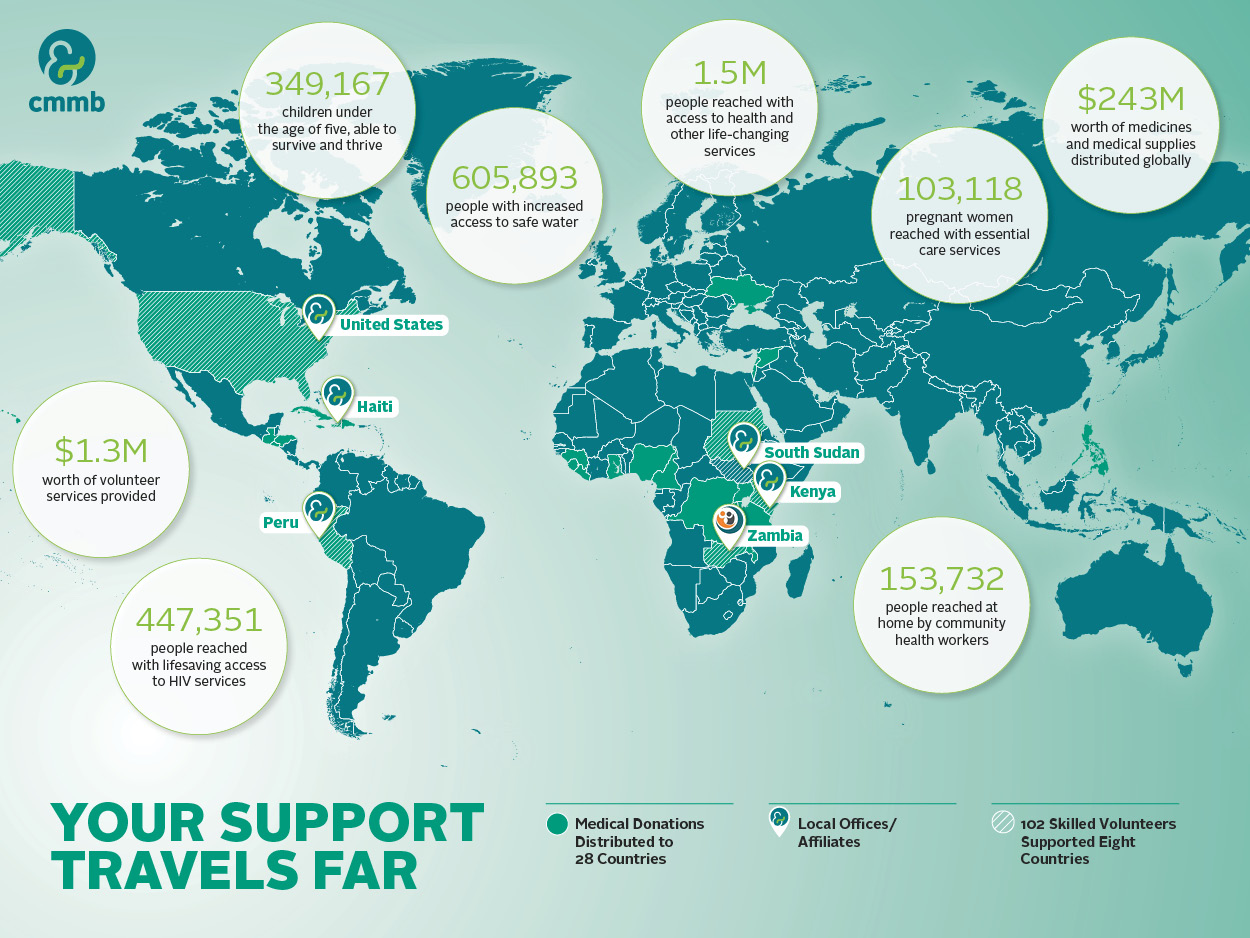 In FY 2025, CMMB reached 1.5 million people with access to health and other life-changing services. We also distributed $243 million worth of medicines and medical supplies to 28 countries.