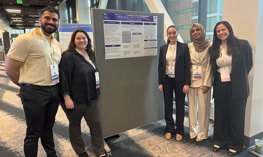The team presented their poster, titled “Development of a Tool to Measure the Adherence of Global Health Volunteers to Ethical Guidelines for Global Health Service,” to undergraduate and graduate students and public health professionals from a wide variety of disciplines. The selection process for poster presentations was highly selective and a massive accomplishment for the CMMB and NYU AGPHI team.